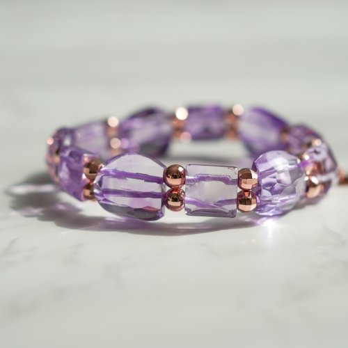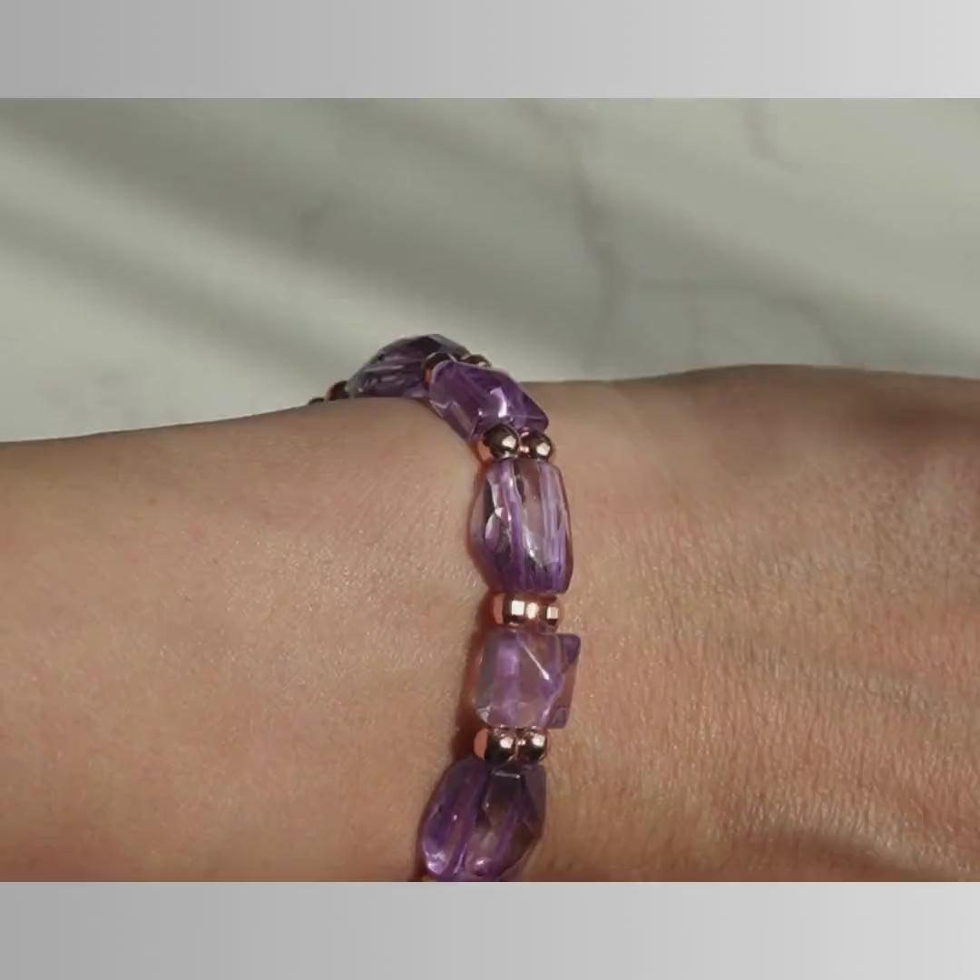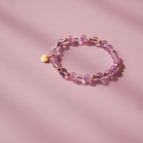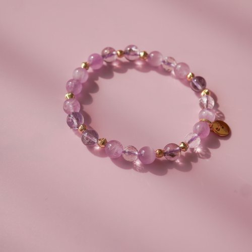 紫鋰輝紫阿塞切面白水晶14KGF手鏈