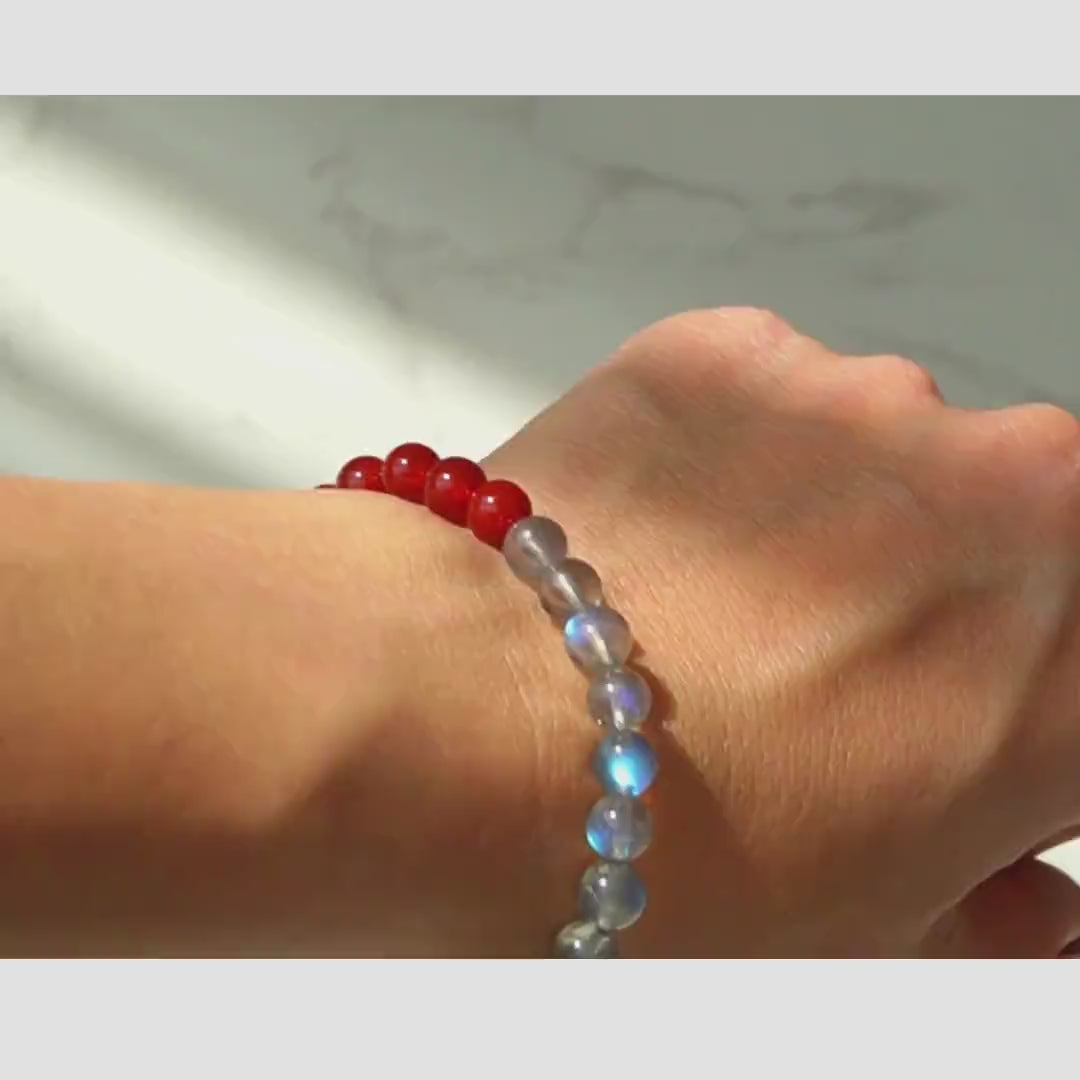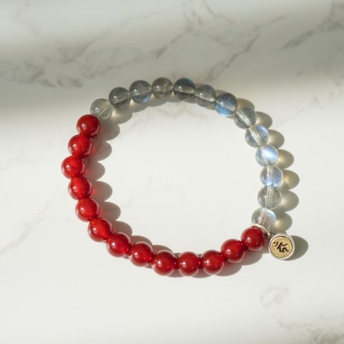 紅瑪瑙拉長石生肖轉運925純銀手鏈
