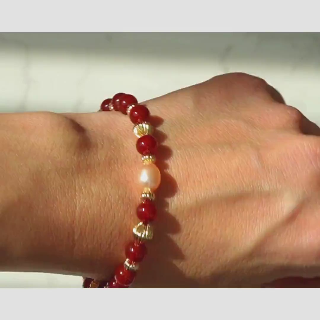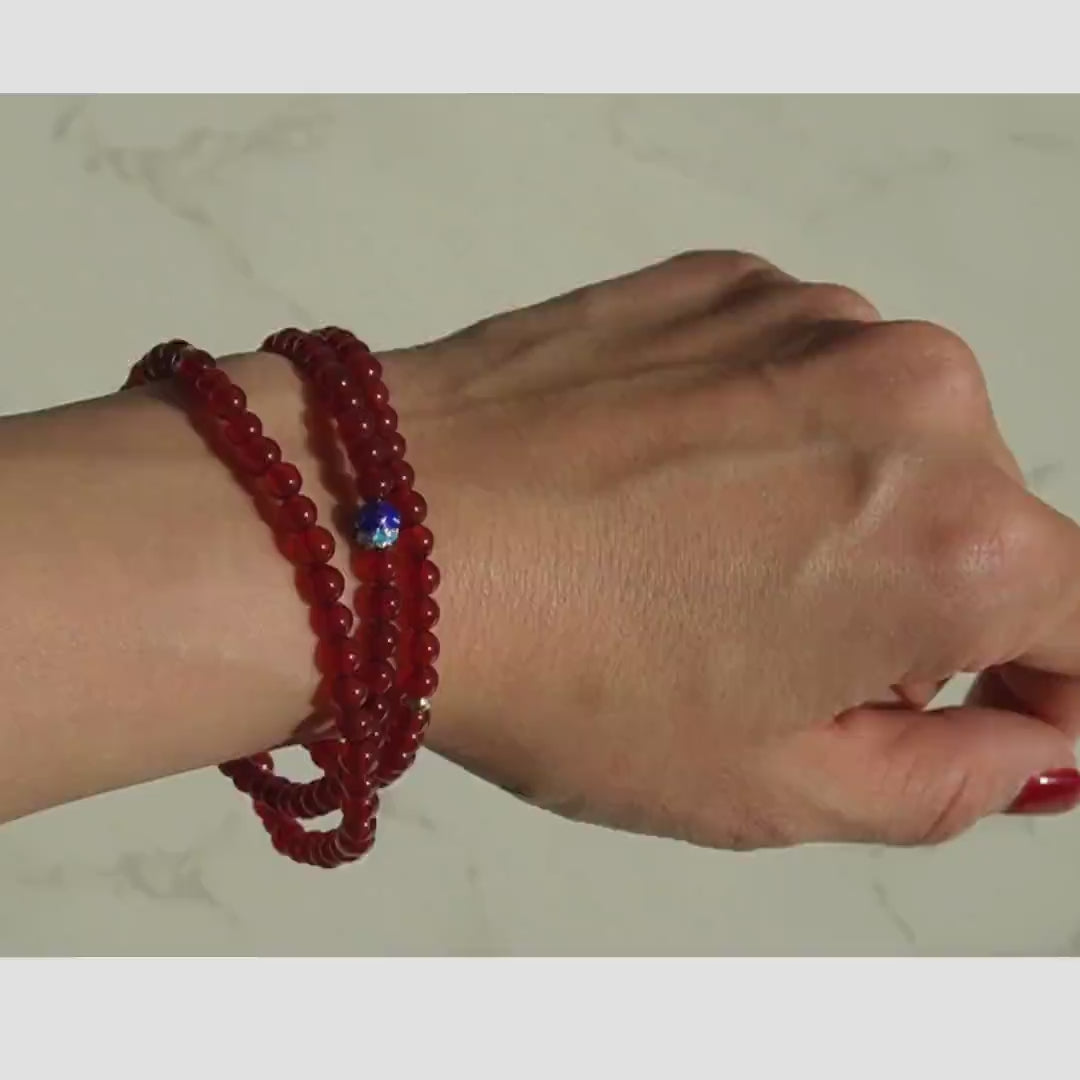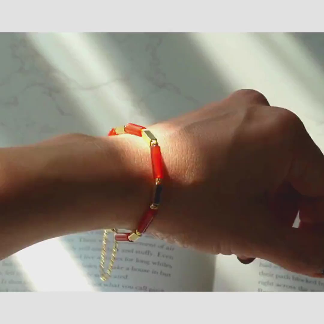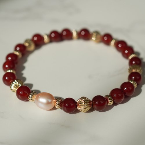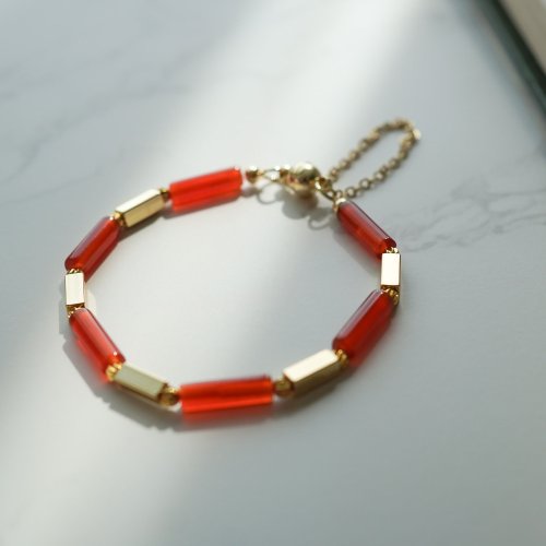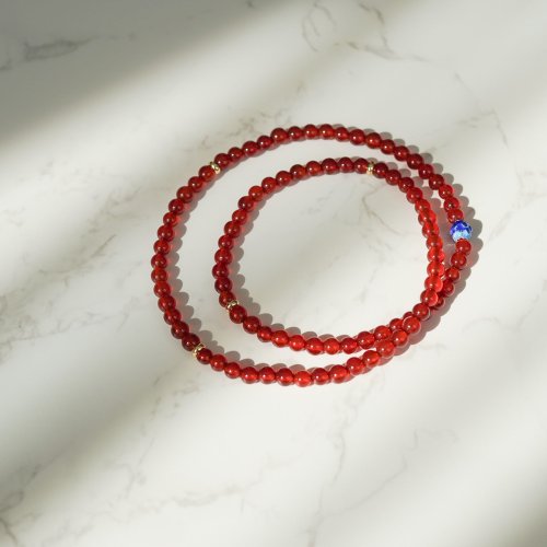 紅瑪瑙三圈藍珐琅隔珠14KGF手鏈