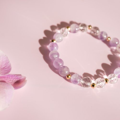 薰衣草紫晶白水晶14KGF手鏈