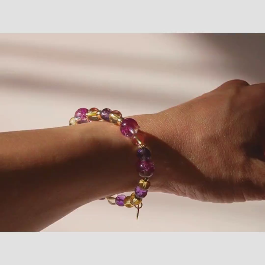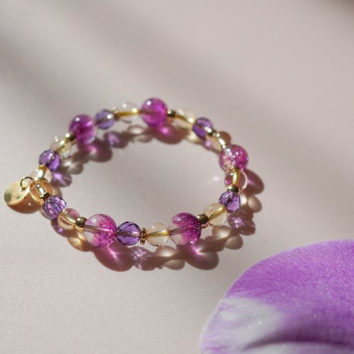 薰衣草紫晶紫馬粉晶14KGF彈性手鍊