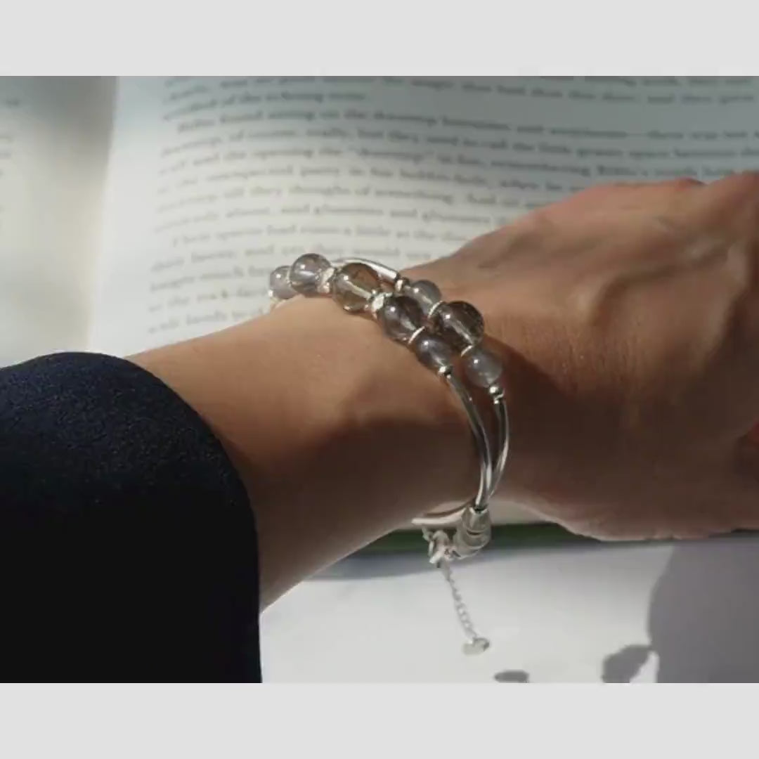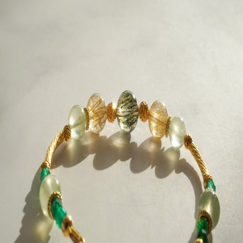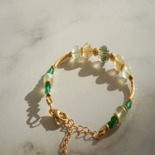 綠髮晶金髮晶葡萄石925純銀手鏈