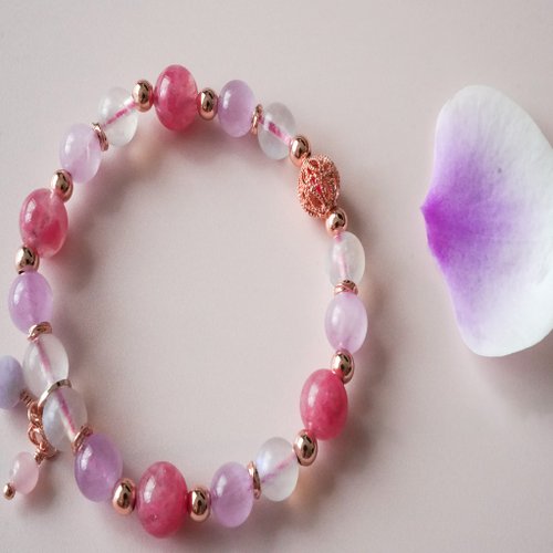 薔薇輝紫鋰輝藍月光14KGF包玫瑰金手鏈