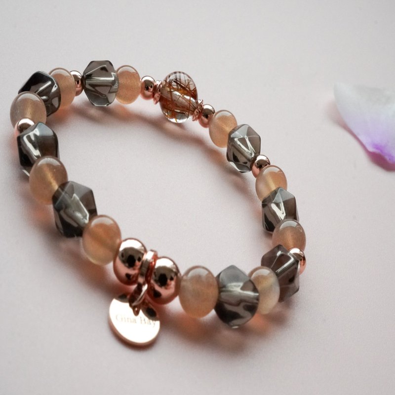 銅髮晶太陽石茶晶14KGF手鏈