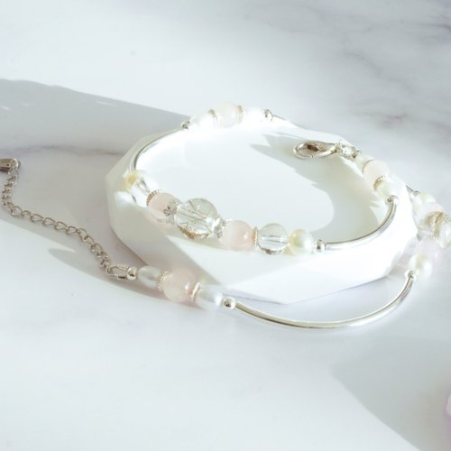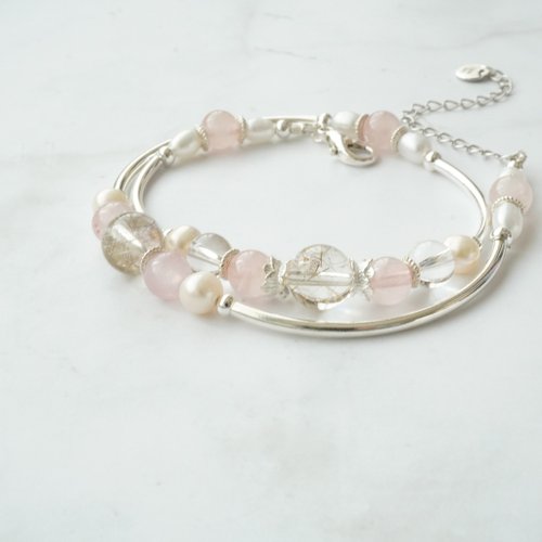 銀髮晶芙蓉粉晶白水晶淡水珍珠925純銀雙鏈