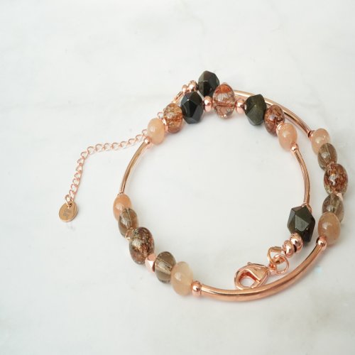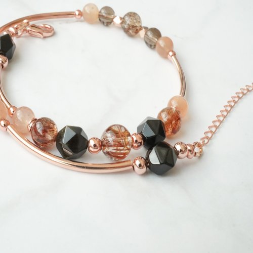 銅髮晶太陽石金曜石黑金超七925純銀包玫瑰金雙鏈