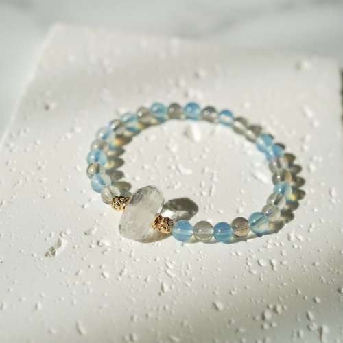 閃靈鑽海藍寶拉長石14KGF彈性手鏈