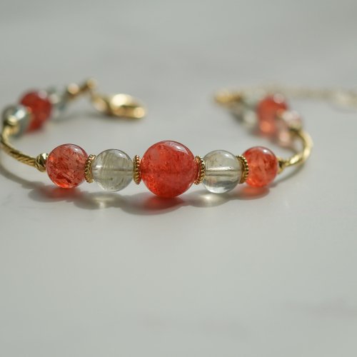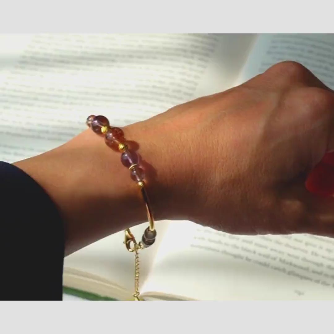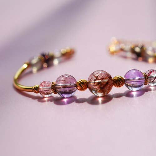 銅髮晶紫水晶紅膠花拉長石手鏈
