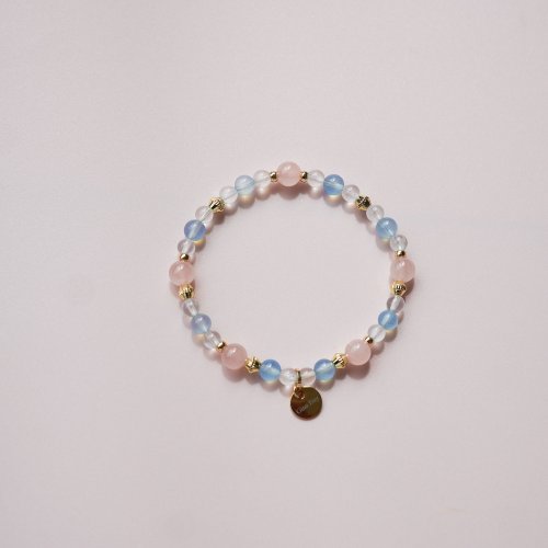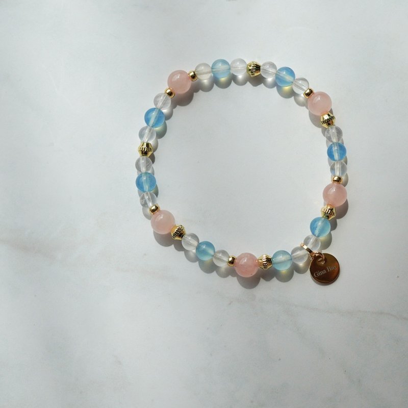 馬達拉斯加粉晶海藍寶月光石14KGF手鏈