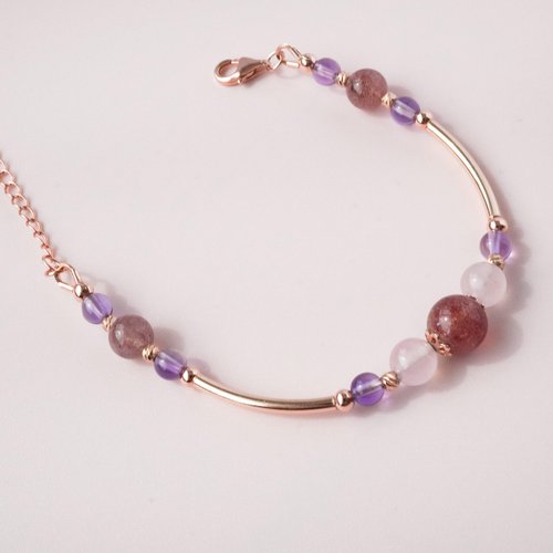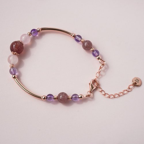 鴿紅草莓紫水晶粉晶925純銀玫瑰金手鏈