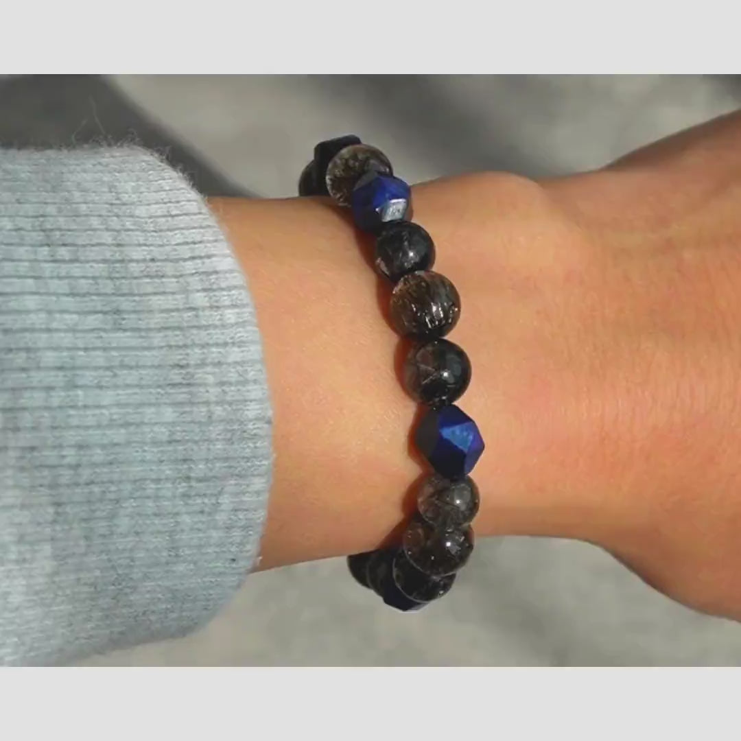 黑加侖超七黑髪晶切面藍虎眼手鏈