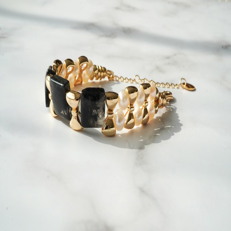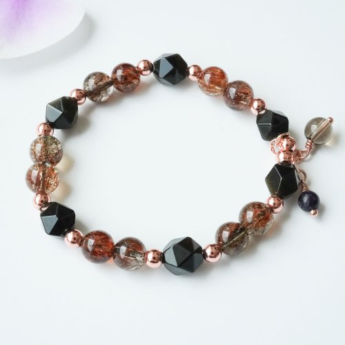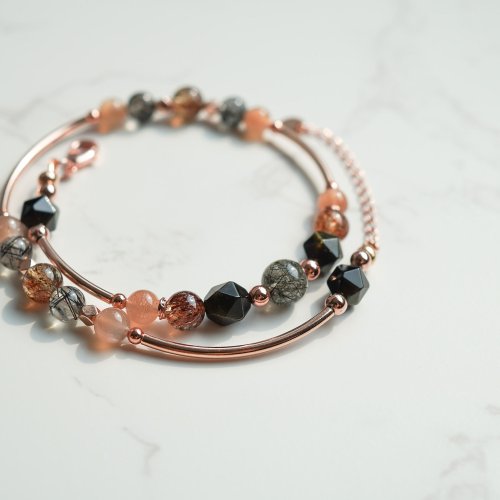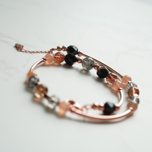 黑髮晶太陽石金曜石黑金超七925純銀包玫瑰金雙鏈