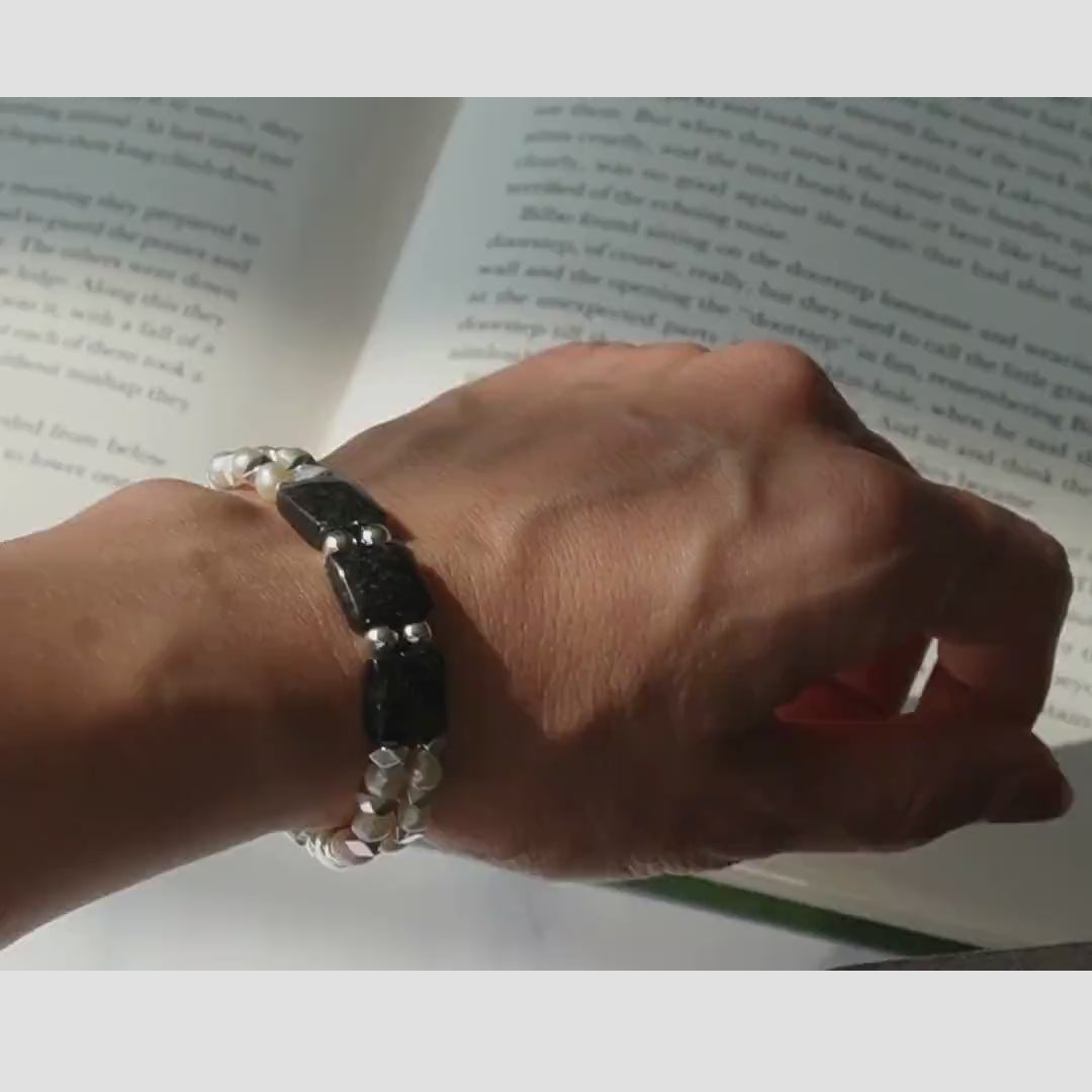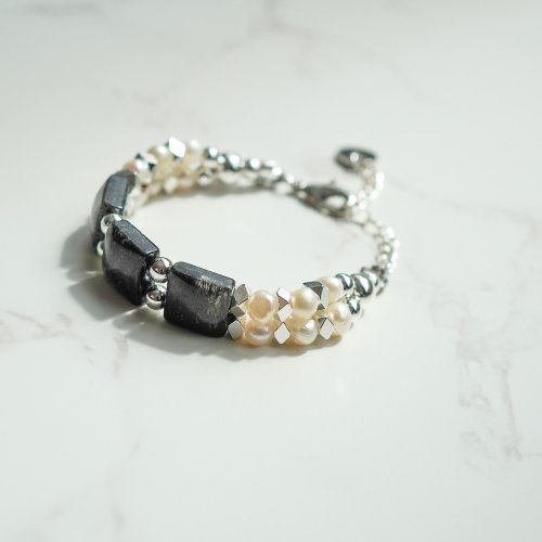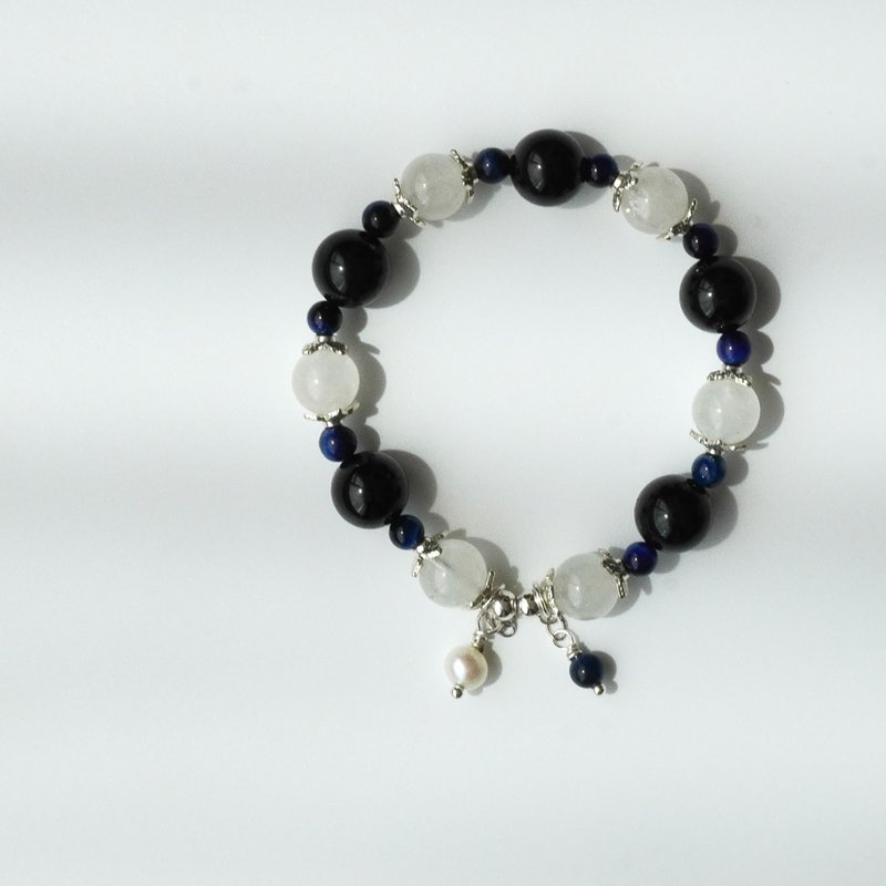 黑碧璽白幽靈虎眼青金石925純銀手鏈