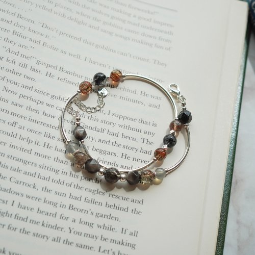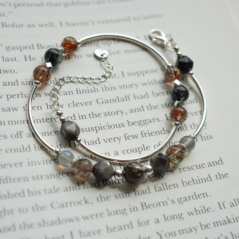 黑髮晶太陽石銀曜石黑金超七拉長石925純銀雙鏈