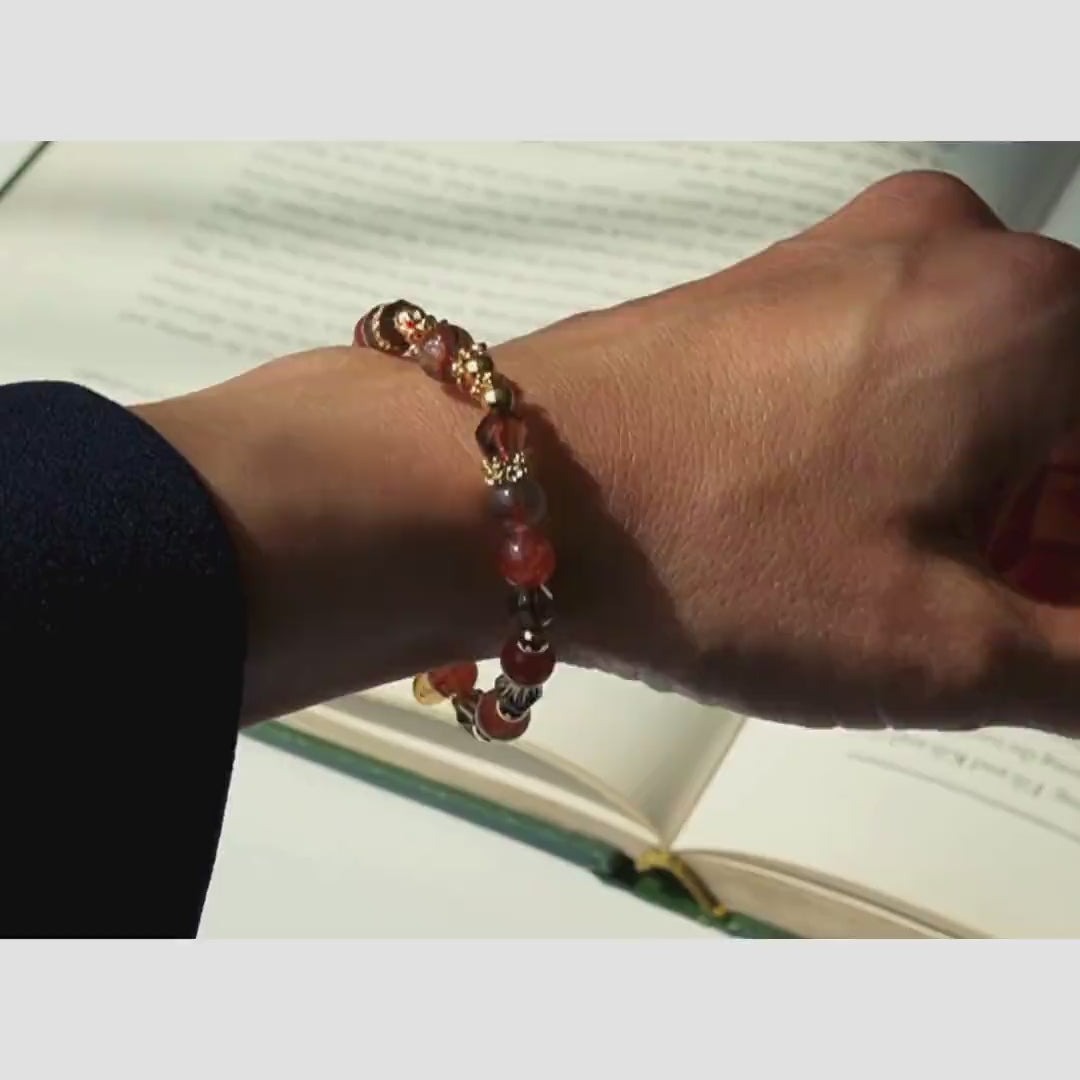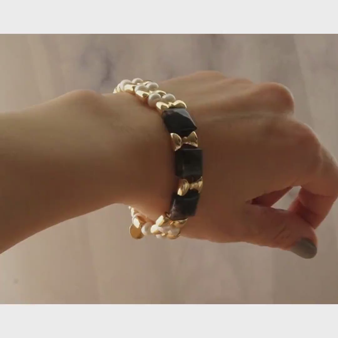 黑金超七虎眼管珠14KGF磁扣手鍊