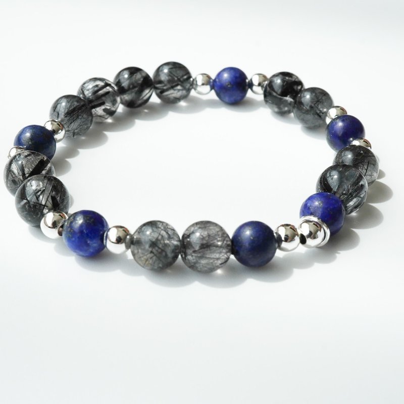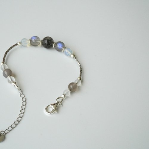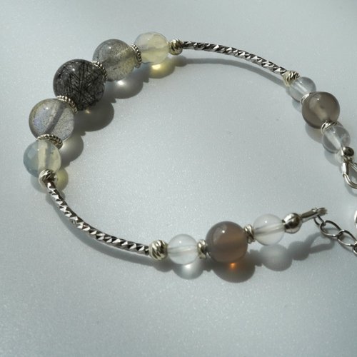 黑髮晶拉長石蛋白石石雲切面灰瑪瑙925純銀手鏈