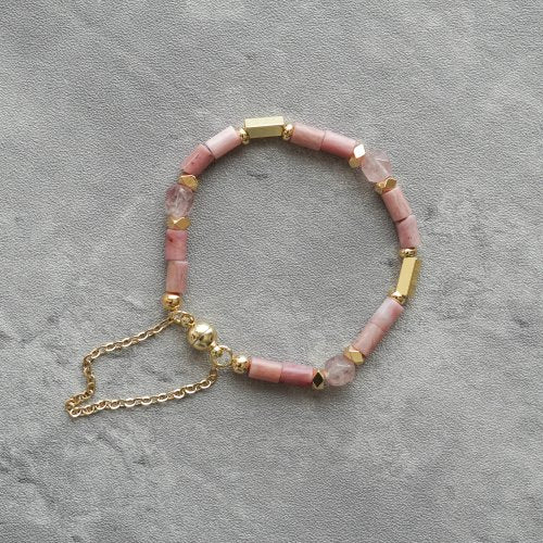 天然粉薔薇切面草莓晶磁扣手鏈
