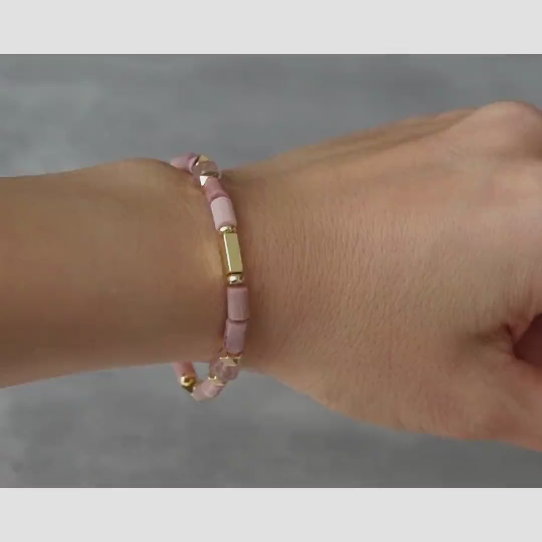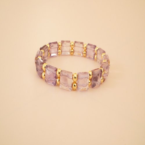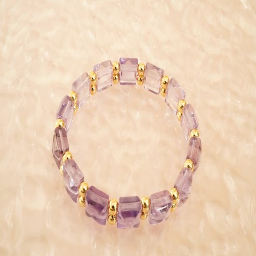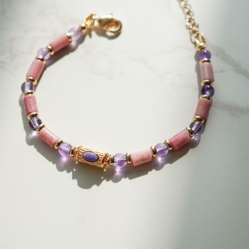 天然薔薇長方珠舒俱來桶珠紫晶14KGF手鏈