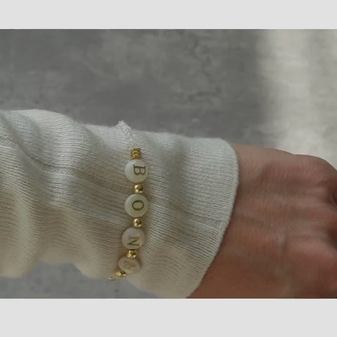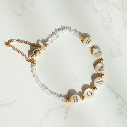天然閃靈鑽淡水貝殼雙面字母14KGF磁扣手鏈