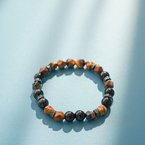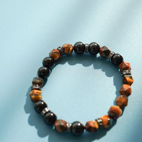 天然黃虎眼黑曜石925純銀手鏈