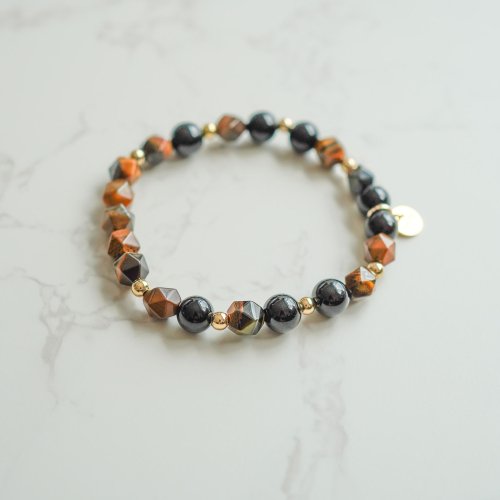 天然黃虎眼黑曜石14KGF手鏈