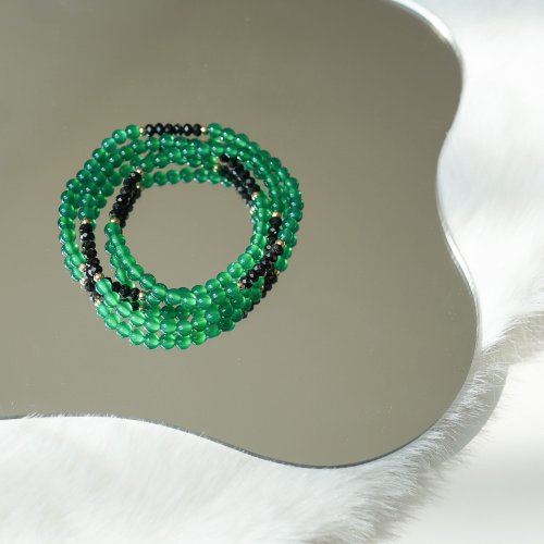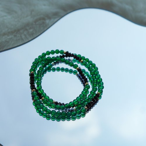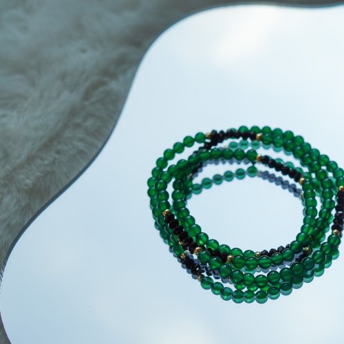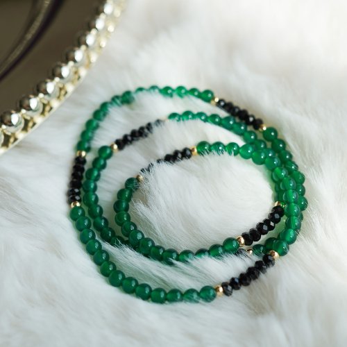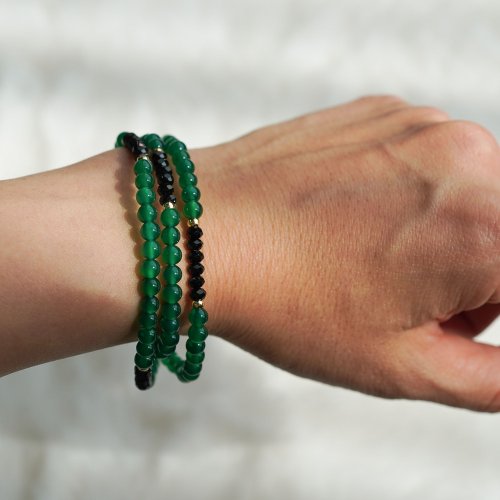 綠瑪瑙切面黑碧璽14KGF手鏈