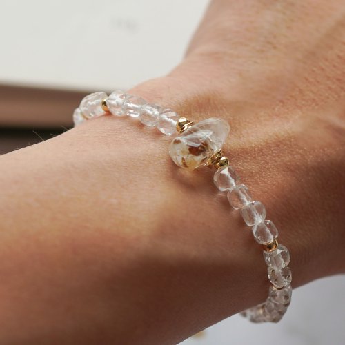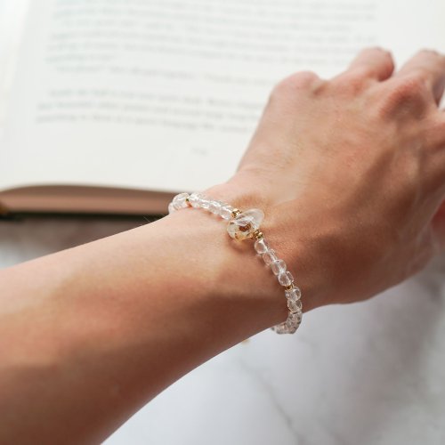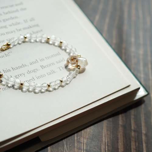 閃靈鑽方形白水晶14K手鏈