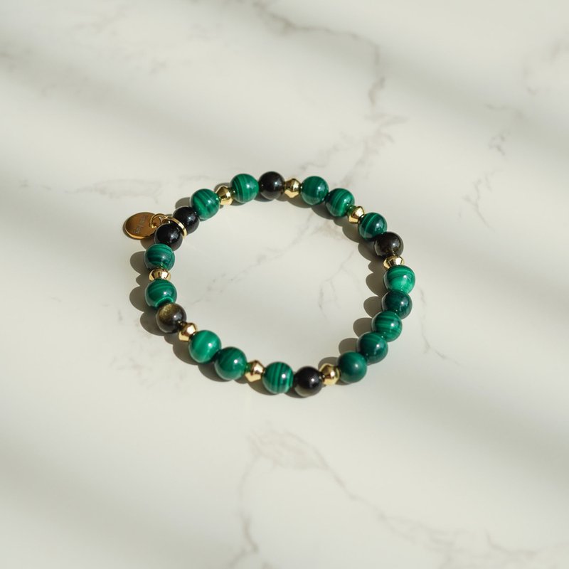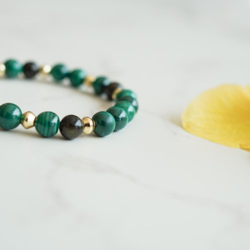 孔雀石具有與人體交換能量的溫柔力量,能夠吸取生命中的傷痛以及情緒,並且交換自身美好,孔雀石含有大量銅礦,說明它與金星頻率相近,可帶來愛與美麗的訊息,相信佩戴的女性都能夠散發內在自信美.