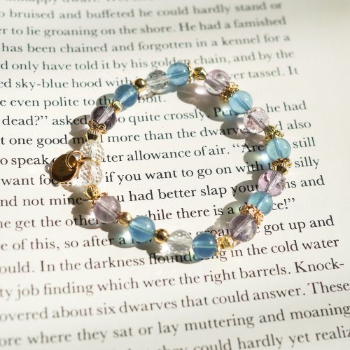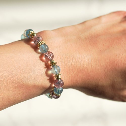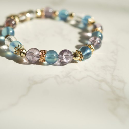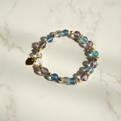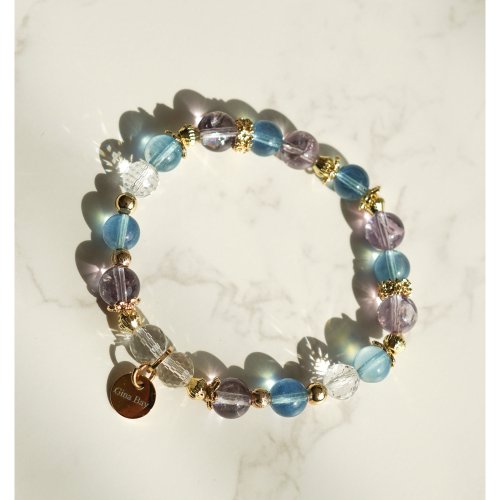 海藍寶紫阿塞切面白水晶14KGF透明彈性手鍊
