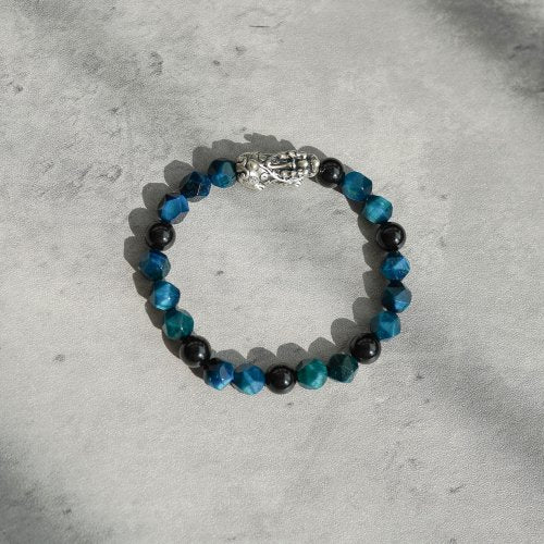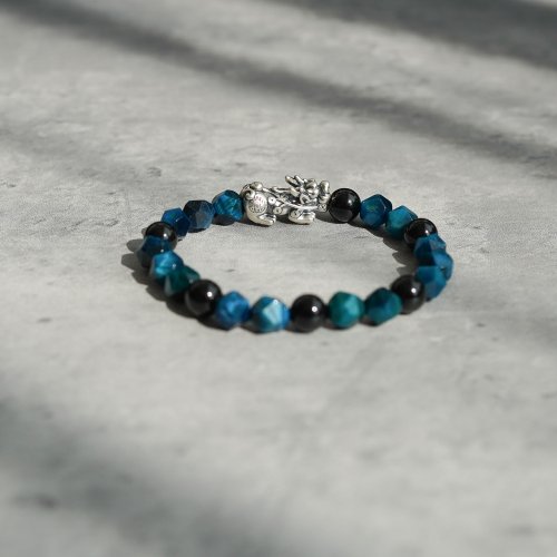 藍虎眼黑碧璽999純銀麒麟轉運手鏈