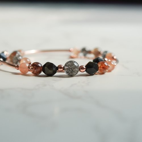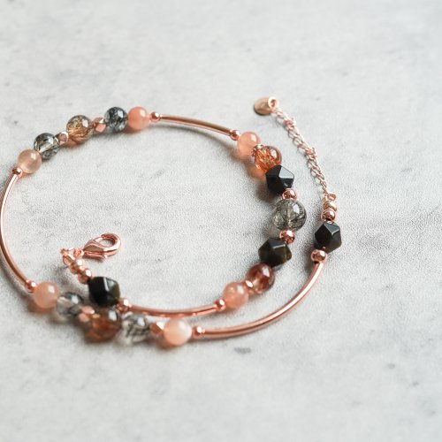 黑髮晶太陽石金曜石黑金超七925純銀包玫瑰金雙鏈