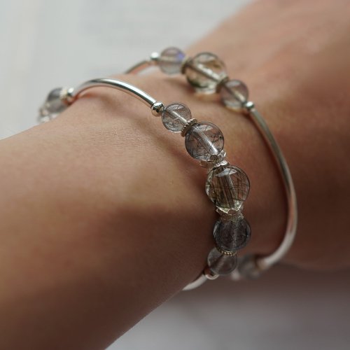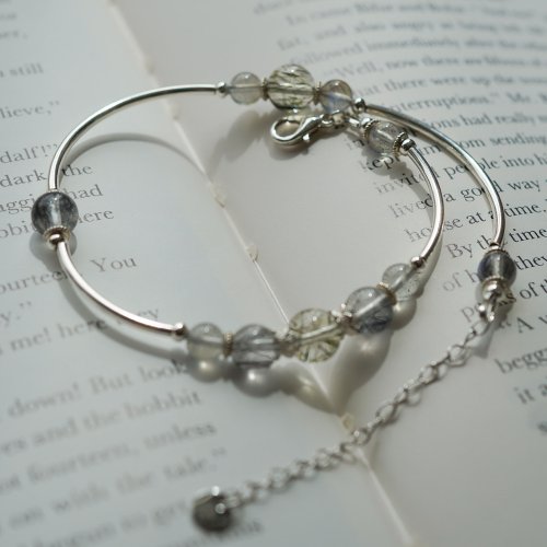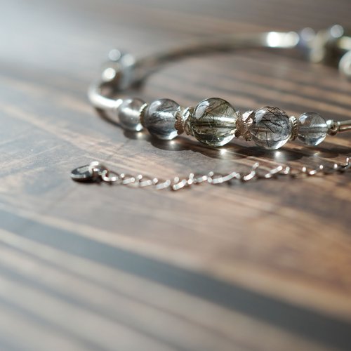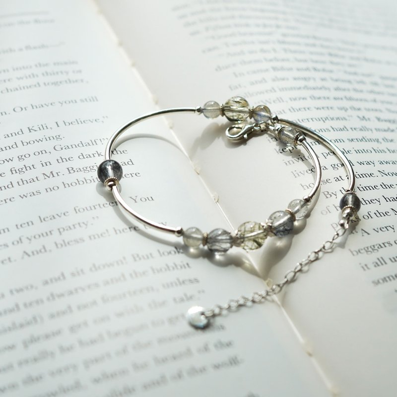 綠髮晶黑髮晶拉長石925純銀雙鏈