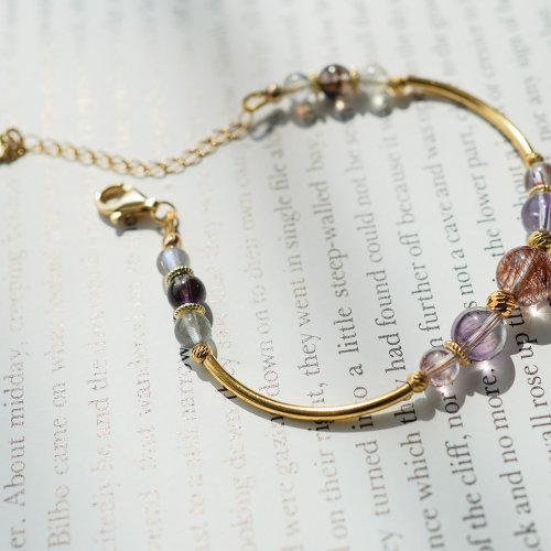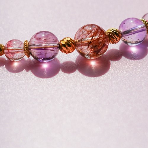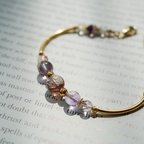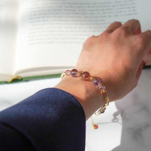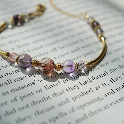 銅髮晶紫水晶紅膠花拉長石手鏈