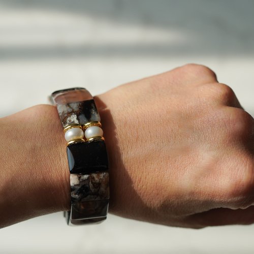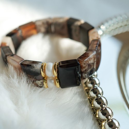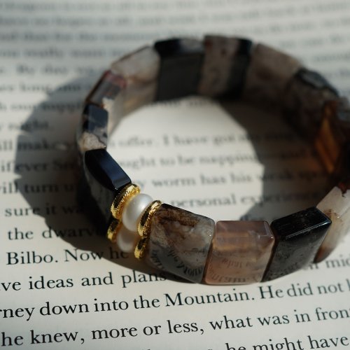 天然黑櫻花瑪瑙淡水珠手排手鏈