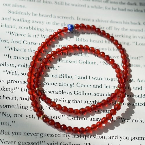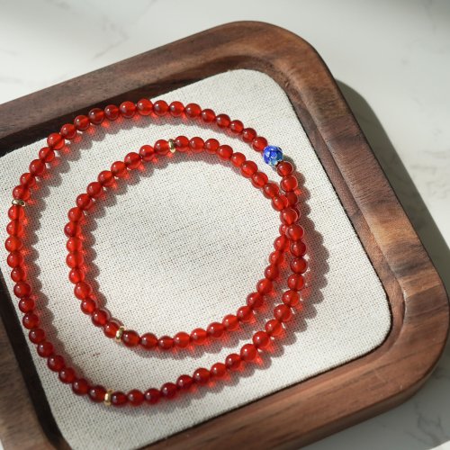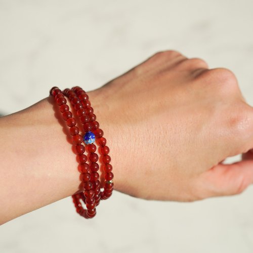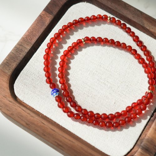 紅瑪瑙三圈藍珐琅隔珠14KGF手鏈