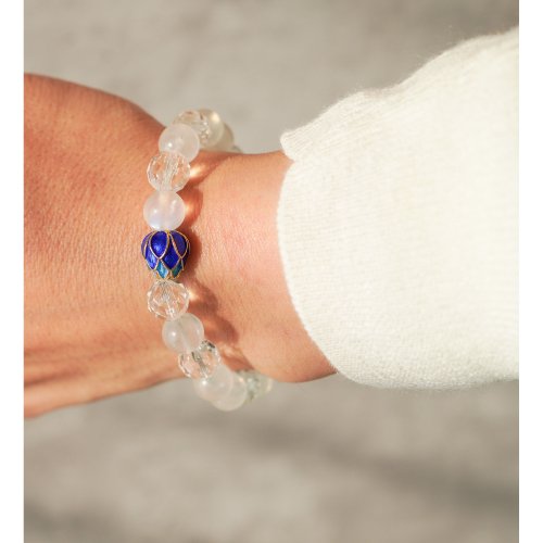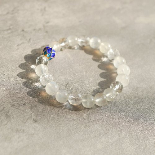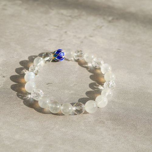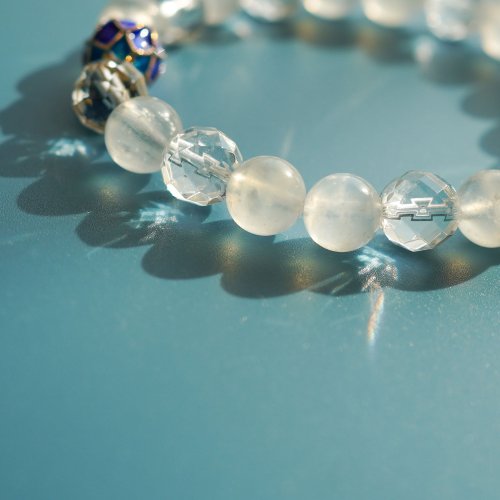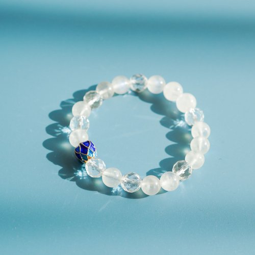 白幽靈切面白水晶藍珐琅串珠手鏈