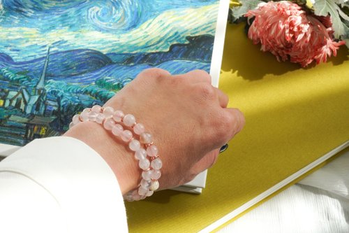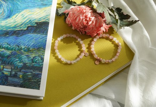 粉水晶又稱「芙蓉晶」或「玫瑰晶」,其柔嫩的粉色是因為水晶中含有微量的鈦元素,在世界礦產產量中數一數二的多,因此相較其他水晶較不容易買到仿冒品。晶體結構上屬六方晶系,粉水晶因為招桃花的功效而廣受女性喜愛,常被列為入門首選。
