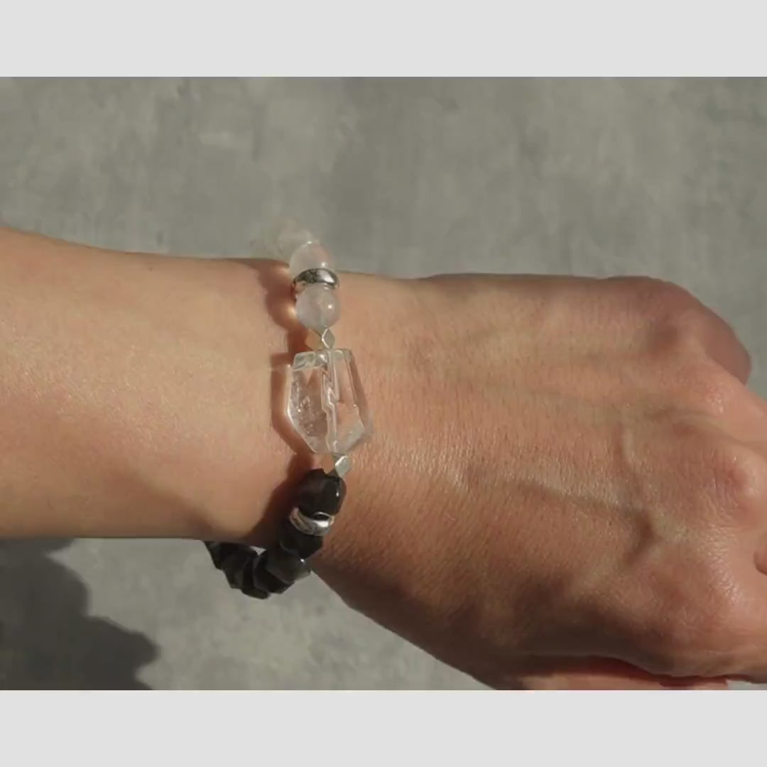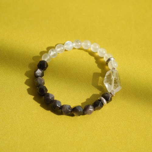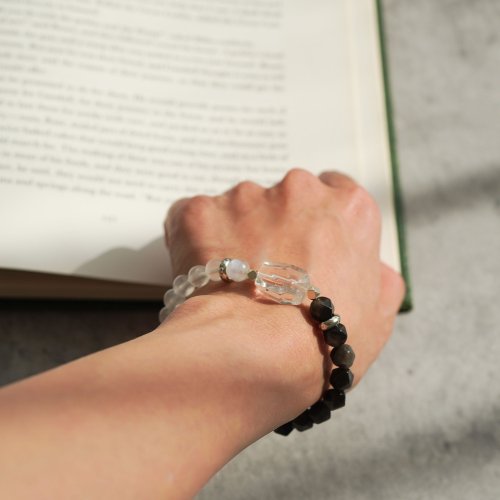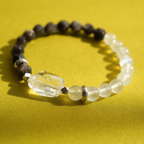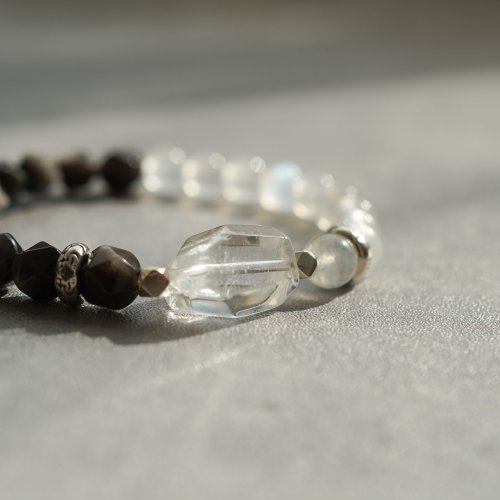 白水晶銀曜石藍月光石925純銀手鏈