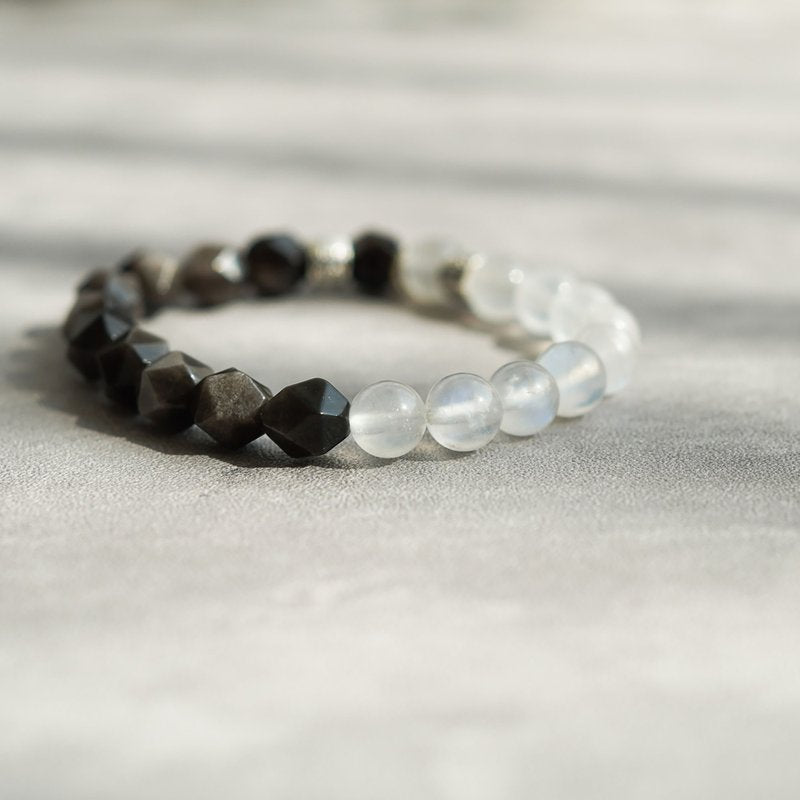 藍月光石銀曜石生肖轉運925純銀手鏈
