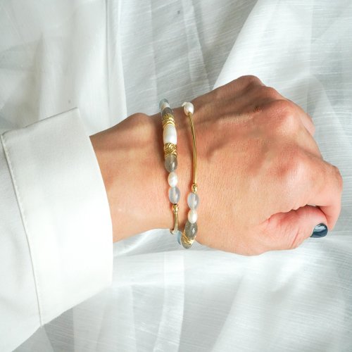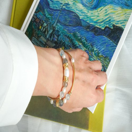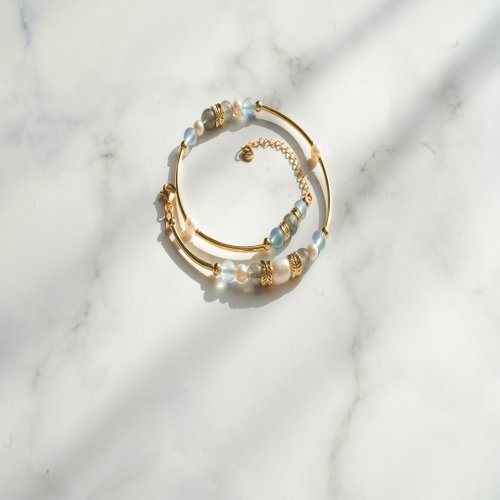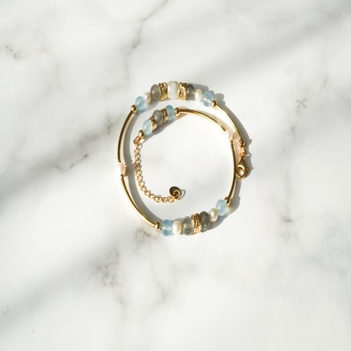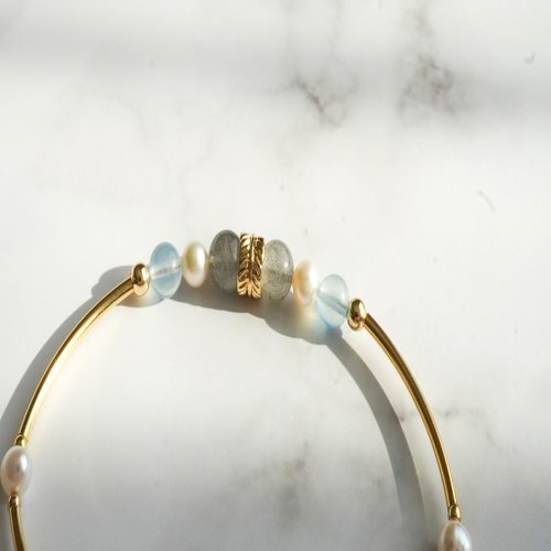 海藍寶拉長石淡水珠14K包金雙圈手鏈
