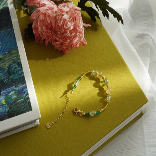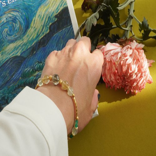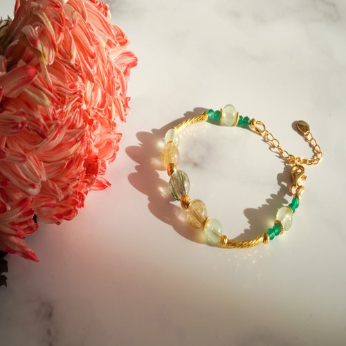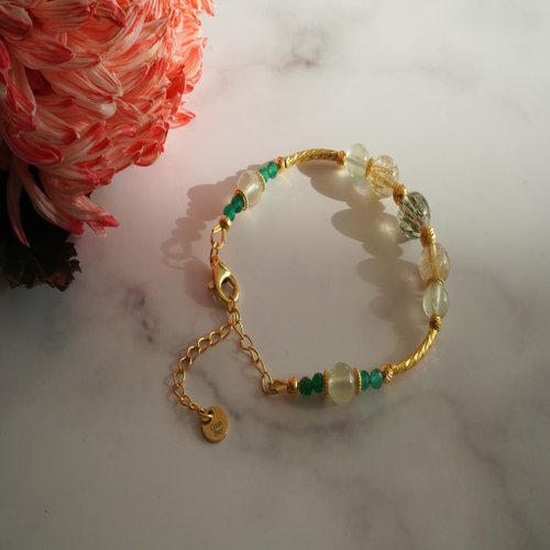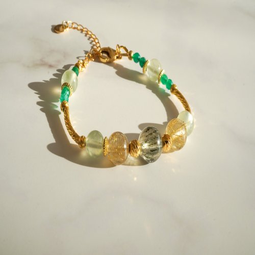 綠髮晶金髮晶葡萄石925純銀手鏈