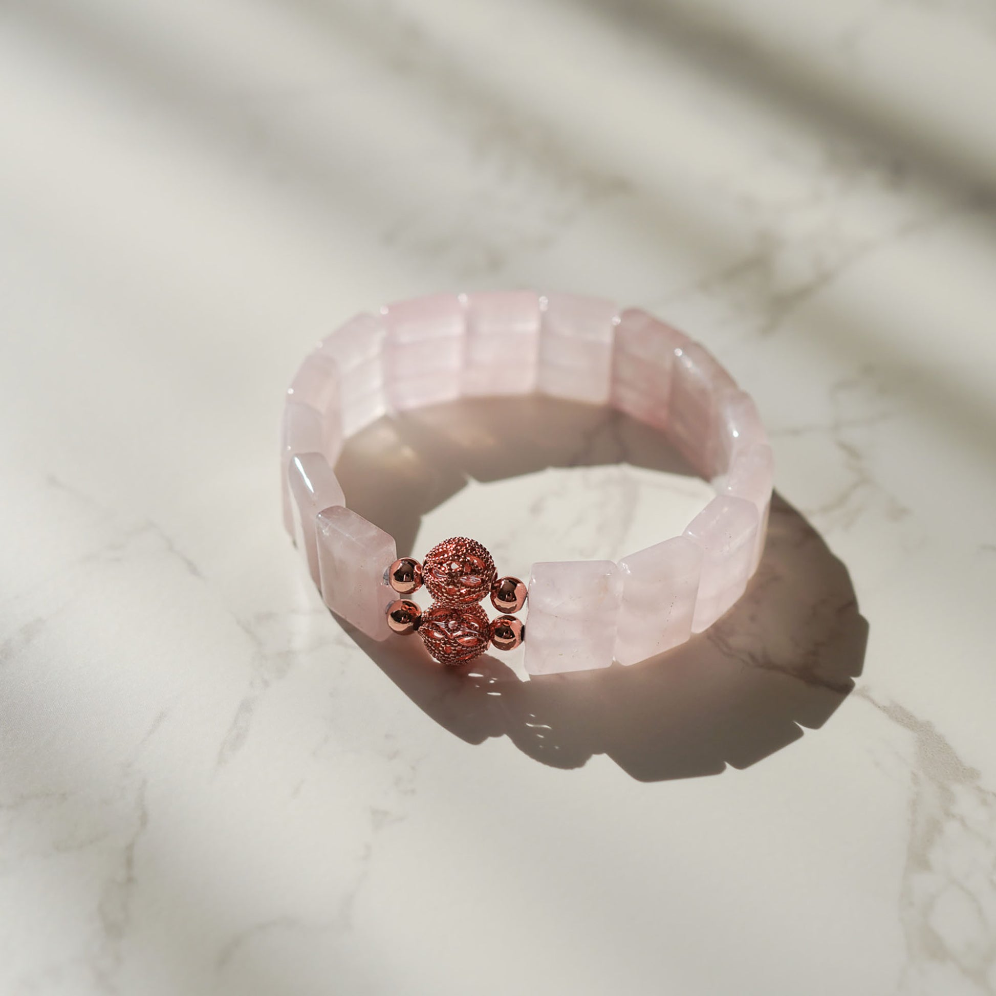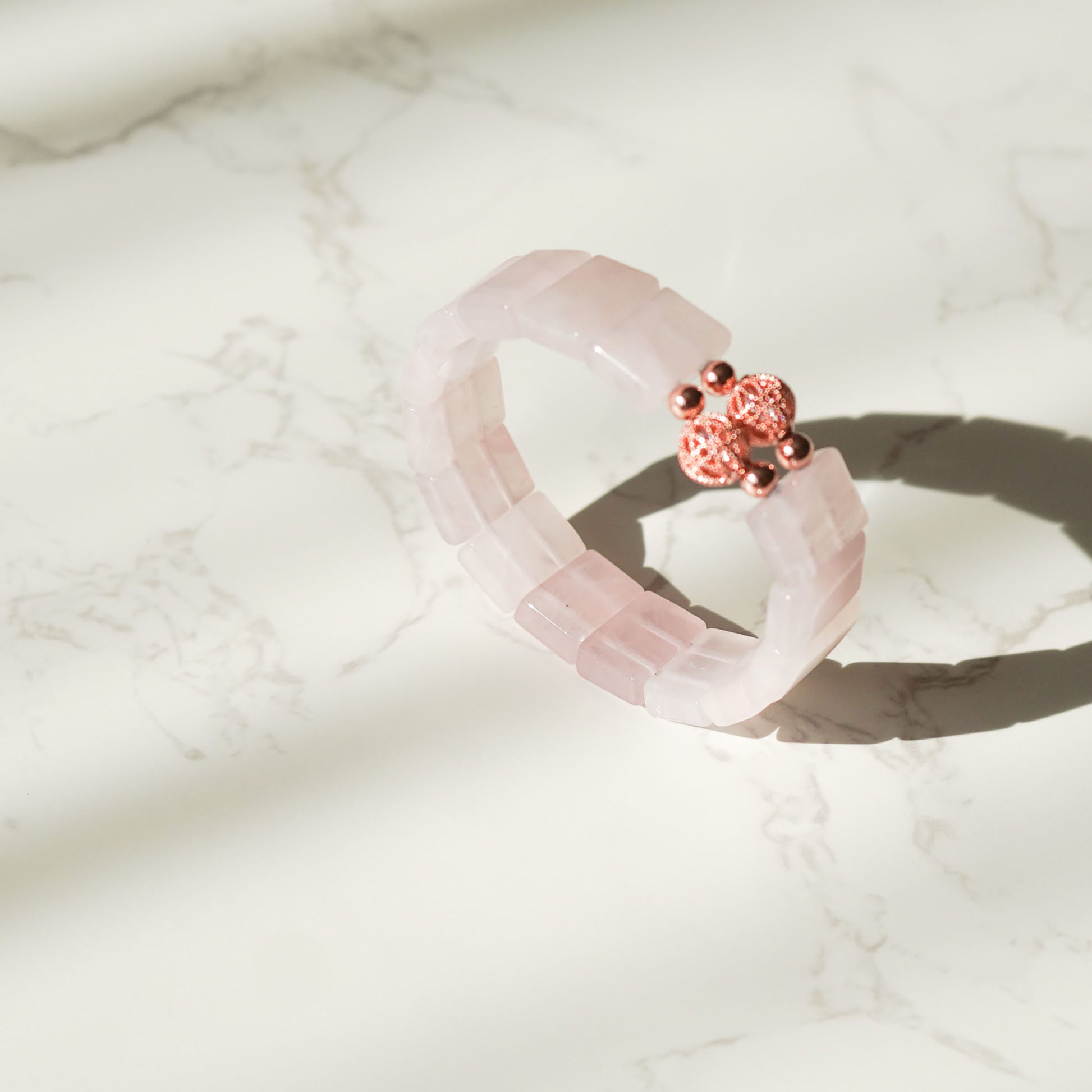粉水晶對應掌管愛的心輪,象徵愛、仁慈與和善,除了招攬桃花,也能舒緩情緒、緩解壓力,平穩心氣神,不僅在感情關係上能夠予以幫助,在與人交際、做生意時也能帶來良緣;廣義來說,粉水晶在人際關係上增進好人緣,在事業上則廣結善緣。