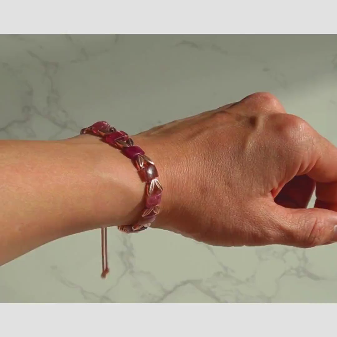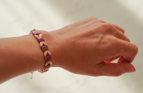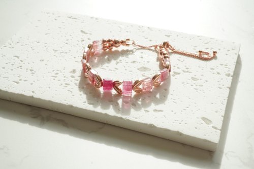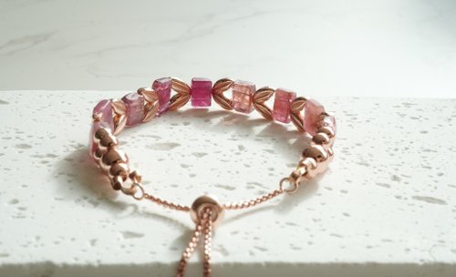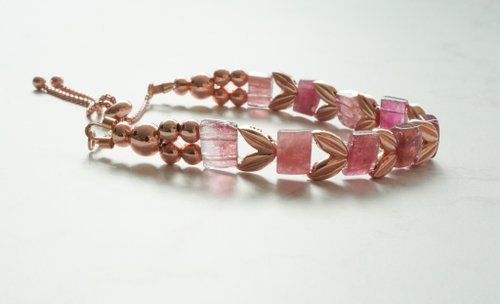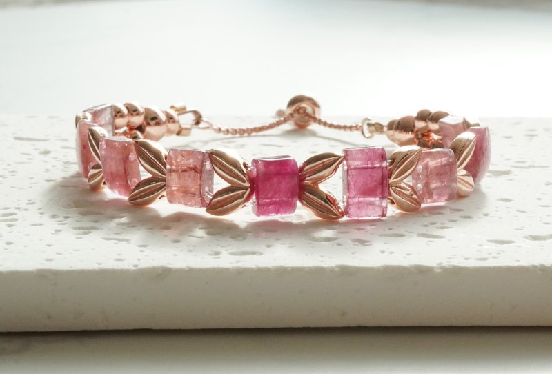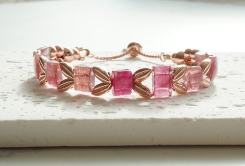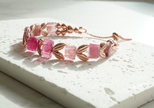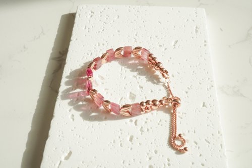 天然粉碧璽手排925純銀包玫瑰金手鏈