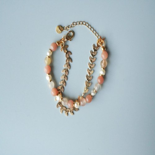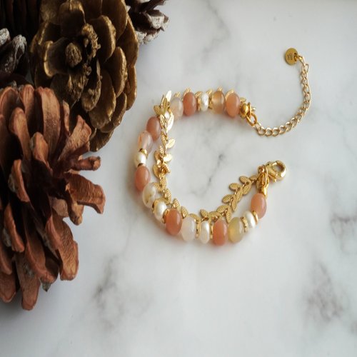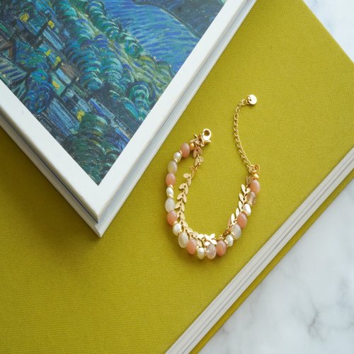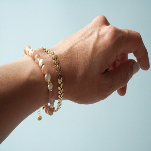 太陽石雪花幽靈巴洛克淡水珠14GF手鏈