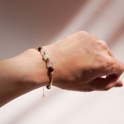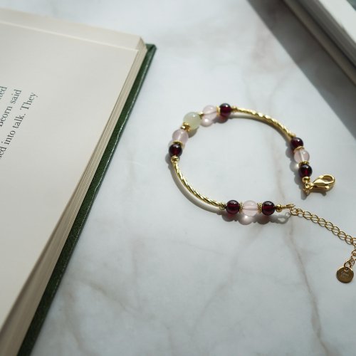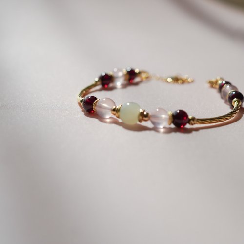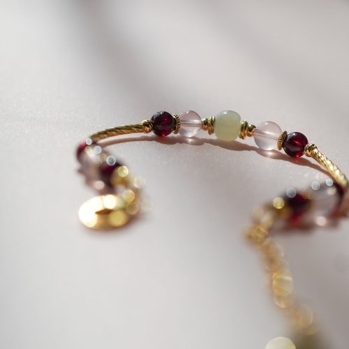 和田玉馬粉晶石榴石925純銀包金手鏈
