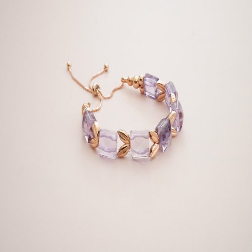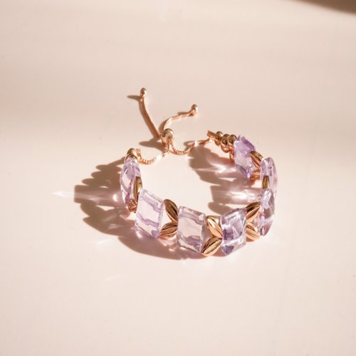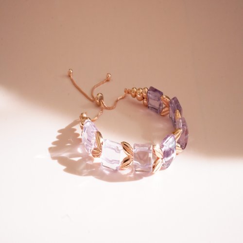 天然金字塔巴西紫水晶925純銀包玫瑰金手排手鏈