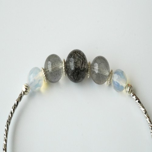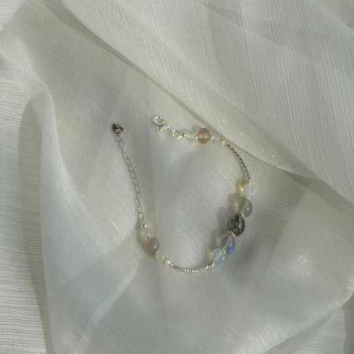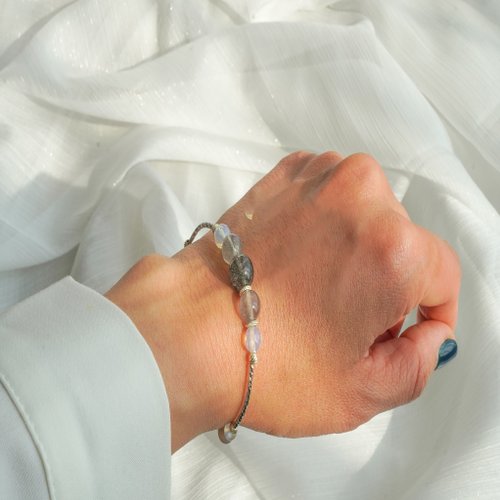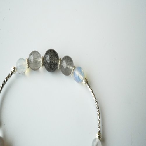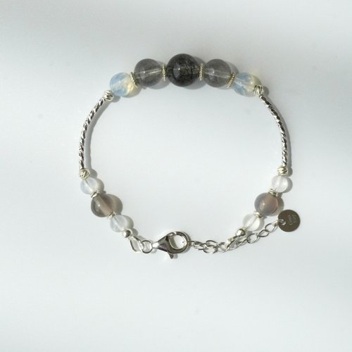 黑髮晶拉長石蛋白石石雲切面灰瑪瑙925純銀手鏈
