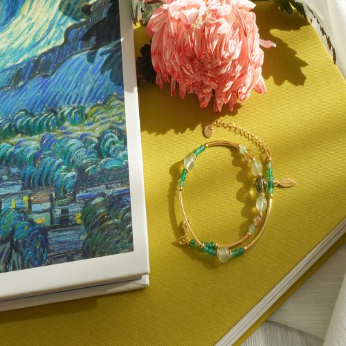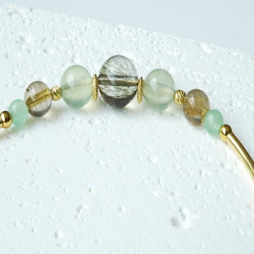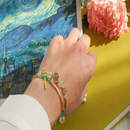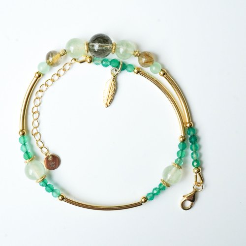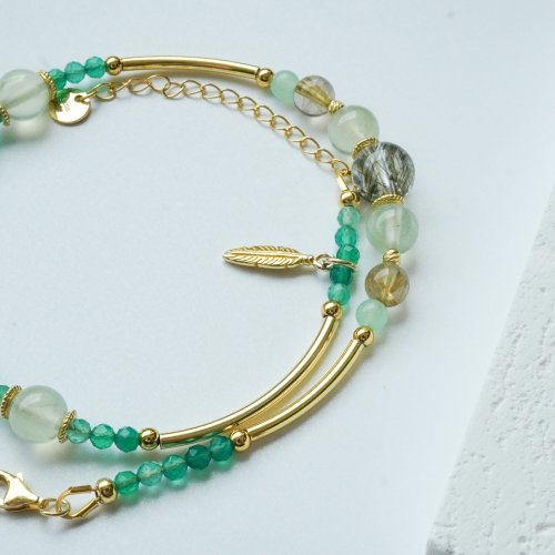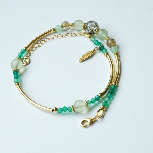 綠髪晶葡萄石綠瑪瑙925純銀包金雙圈手鏈