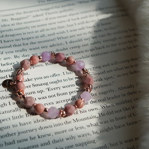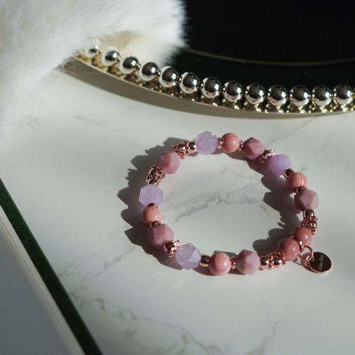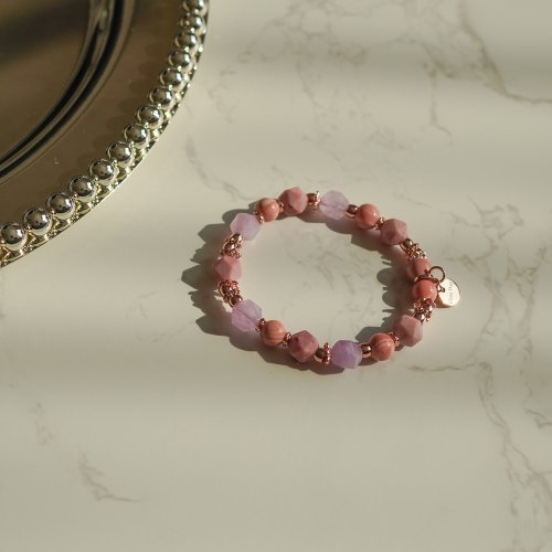 磨砂切面紅紋石切面薰衣草石粉澳寶14KGF手鏈