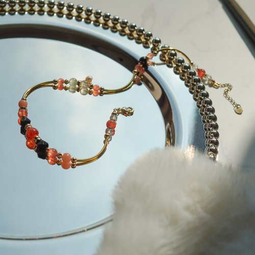 阿魯沙切面金矅石橙月光淡水珠14KGF手鏈